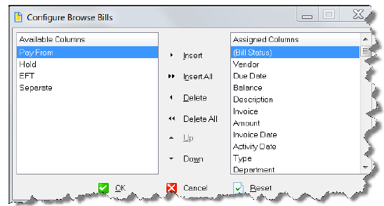 AccuFund’s Document Browse Windows can be configured and stored by user. Users can configure columns displayed, column order, sorting, and query (filter).