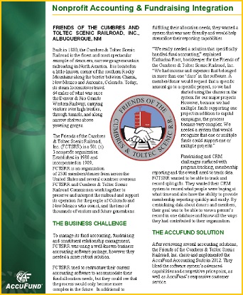 d fulfilling their mission. That’s exactly what happened with our featured client, The Friends of the Cumbres & Toltec Scenic Railroad, in this Case Study. They automated and centralized their accounting and fundraising functions.