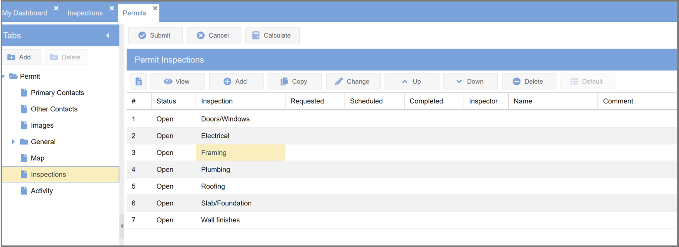 To speed the permitting and inspection process—and make happy customers, inspectors, and clerks—modernize your permit and inspection system. The Permits and Inspections module allows government agencies to assign, schedule, and track the progress of permitting and inspection activities.